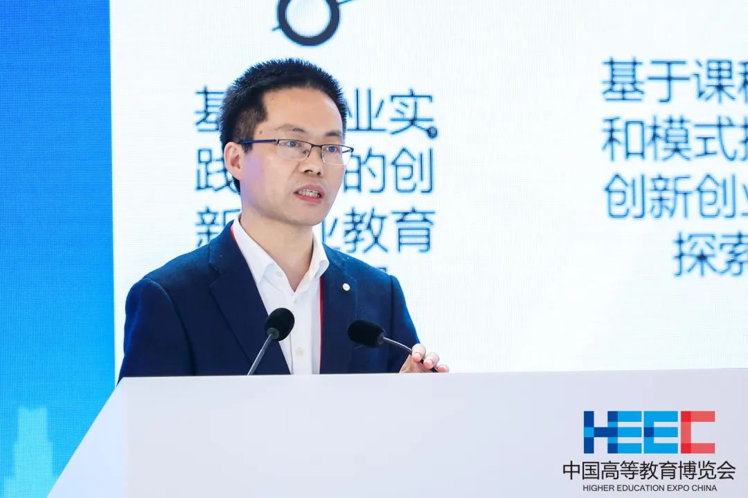 余闯校长在论坛中以“学园城融合,研训创融通,高职创新创业人才培养探索与实践”为题,从国内外创新创业研究,到我校创新创业实践,进行了系统总结与阐述,分享了我校以高质量培养双创素质人才为目标,通过建构“学园城融合”平台+“研训创融通”教学模式;创立以“资源共享、平台共建、成果共用、人才共育”四共为准则的协同创新创业育人理念;搭建以学校牵头的政校行企共建“学校+园区+城市”的“学园城”融合体双创实践教学平台;打造以研促创、以训促创、以创业实践锤炼师生创新创业实战能力的“研训创融通”教学模式,形成分层分类的专创融合教学新体系;建立“融合体服务教学绩效考核、双创教学评价、学生双创素质评价”三维立体评价体系的系统性举措。